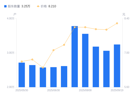 近一年(2024年9月20日至2025年9月19日),长荣股份A股股东户数从2.02万户,增加至3.25万户,增幅60.89%,区间股价上涨98.31%。