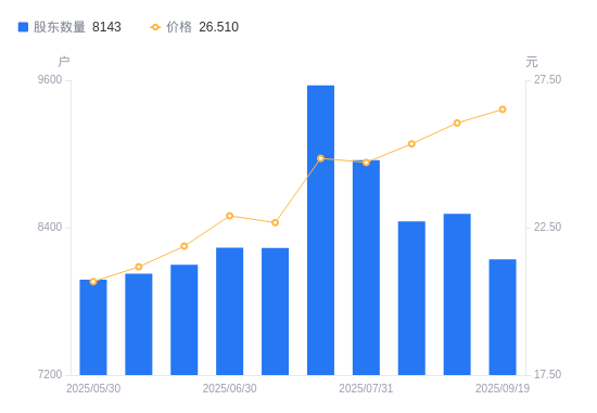 近一年(2024年9月20日至2025年9月19日),天禄科技A股股东户数从8254户,减低至8143户,降幅1.34%,区间股价上涨67.89%。