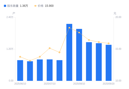近一年(2024年9月30日至2025年9月20日),筑博设计A股股东户数从1.04万户,增加至1.36万户,增幅30.27%,区间股价上涨76.08%。