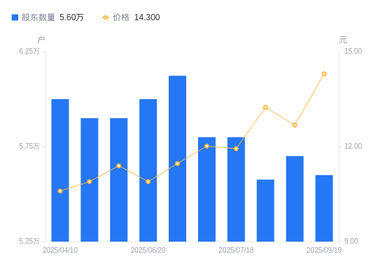 近一年(2024年9月30日至2025年9月19日),晋控煤业A股股东户数从4.06万户,增加至5.6万户,增幅37.84%,区间股价下跌6.81%。