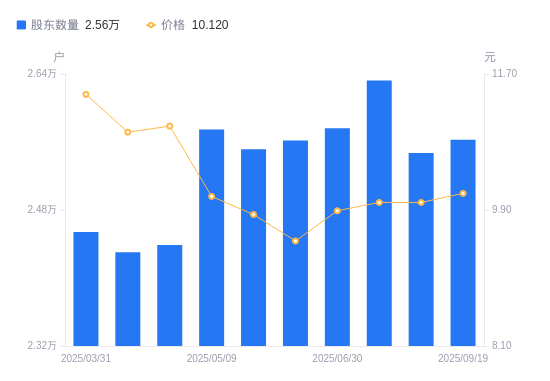 近一年(2024年9月30日至2025年9月19日),广日股份A股股东户数从2.27万户,增加至2.56万户,增幅13.01%,区间股价下跌4.84%。