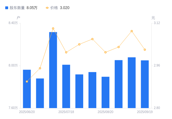 近一年(2024年9月20日至2025年9月19日),天邦食品A股股东户数从8.48万户,减低至8.05万户,降幅5.05%,区间股价上涨39.81%。