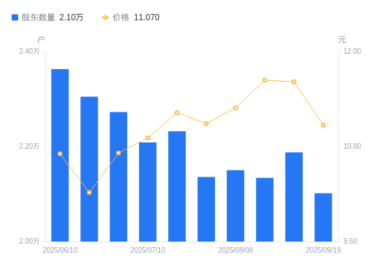 近一年(2024年9月20日至2025年9月19日),英特集团A股股东户数从2.64万户,减低至2.1万户,降幅20.51%,区间股价上涨26.27%。