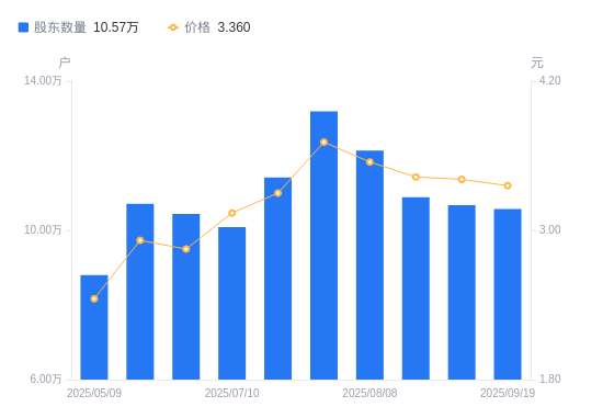近一年(2024年9月30日至2025年9月19日),誉衡药业A股股东户数从9.44万户,增加至10.57万户,增幅11.94%,区间股价上涨63.11%。