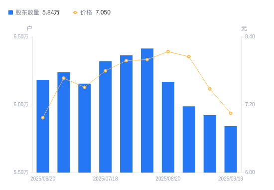 近一年(2024年9月20日至2025年9月19日),万达信息A股股东户数从5.35万户,增加至5.84万户,增幅9.29%,区间股价上涨36.89%。