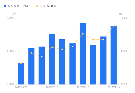 近一年(2024年9月30日至2025年9月19日),江苏雷利A股股东户数从2.3万户,增加至5.26万户,增幅128.63%,区间股价上涨227.33%。