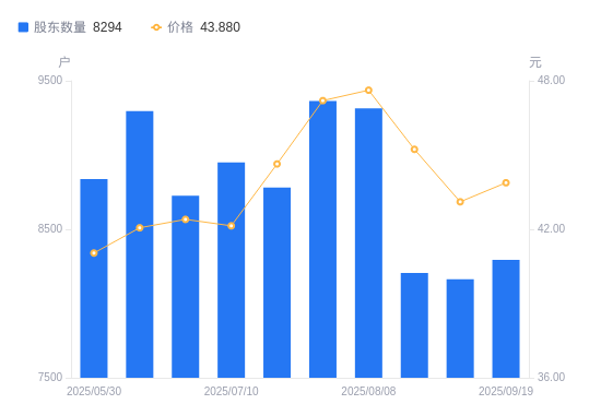 近一年(2024年9月20日至2025年9月19日),丰茂股份A股股东户数从6340户,增加至8294户,增幅30.82%,区间股价上涨80.69%。