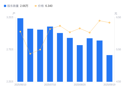 近一年(2024年9月20日至2025年9月19日),海翔药业A股股东户数从2.79万户,减低至2.66万户,降幅4.54%,区间股价上涨19.85%。
