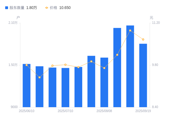 近一年(2024年9月20日至2025年9月19日),华智数媒A股股东户数从1.76万户,增加至1.8万户,增幅2.38%,区间股价上涨49.79%。