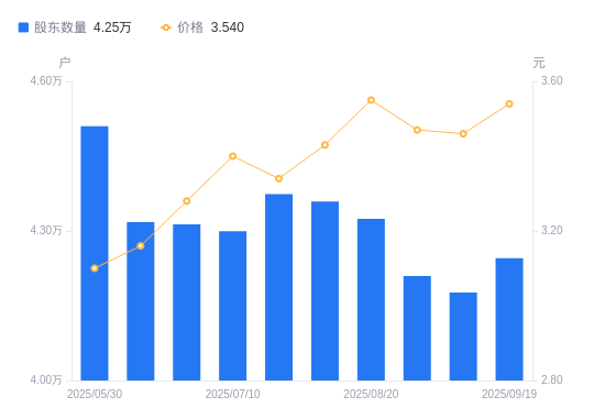 近一年(2024年9月10日至2025年9月10日),阳光照明A股股东户数从3.81万户,增加至4.18万户,增幅9.65%,区间股价上涨51.09%。