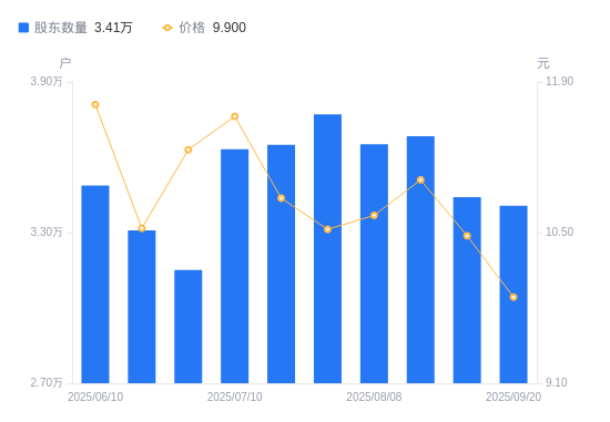 近一年(2024年9月30日至2025年9月20日),保龄宝A股股东户数从3.41万户,减低至3.41万户,降幅0.14%,区间股价上涨50.34%。