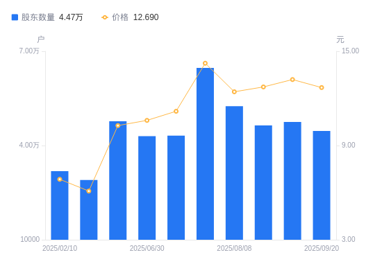 9月24日消息,数据显示,截至2025年9月20日,睿智医药A股股东总户数为4.47万户,较上期(2025年9月10日)减少2847户,降幅5.99%。公司最新A股总股本为4.98亿股,其中流通A股4.75亿股,户均持有流通A股数量为1.06万股,较上期增加636.82股,增幅6.37%;户均持流通A股市值13.48万元,较上期增加2986.65元,增幅2.27%。