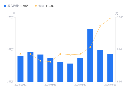 近一年(2024年9月30日至2025年9月19日),ST西发A股股东户数从1.78万户,减低至1.59万户,降幅10.58%,区间股价上涨76.82%。