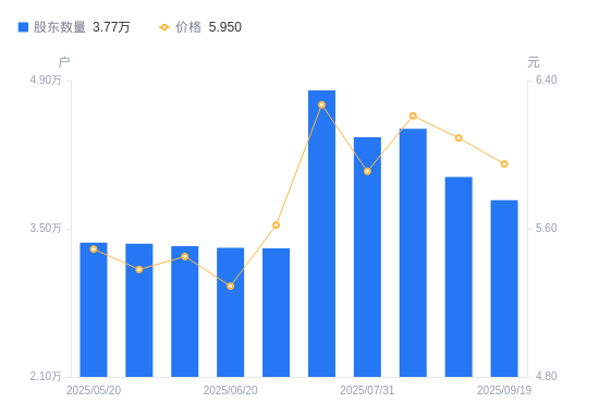 近一年(2024年9月20日至2025年9月19日),秀强股份A股股东户数从3.74万户,增加至3.77万户,增幅0.91%,区间股价上涨39.67%。