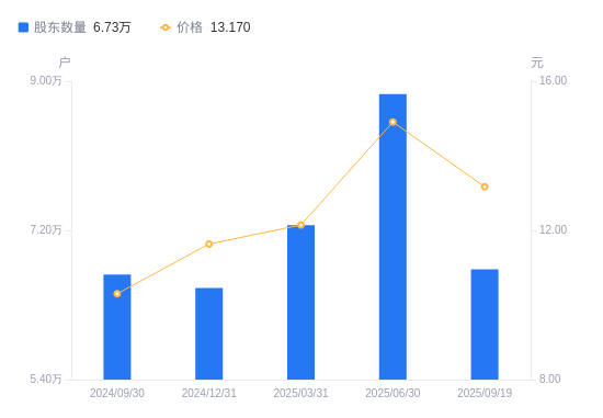 近一年(2024年9月30日至2025年9月19日),东安动力A股股东户数从6.67万户,增加至6.73万户,增幅0.95%,区间股价上涨38.17%。