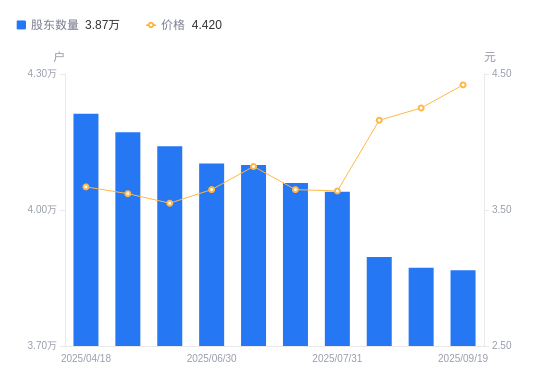 近一年(2024年9月10日至2025年9月10日),华联控股A股股东户数从3.95万户,减低至3.87万户,降幅2.03%,区间股价上涨47.57%。