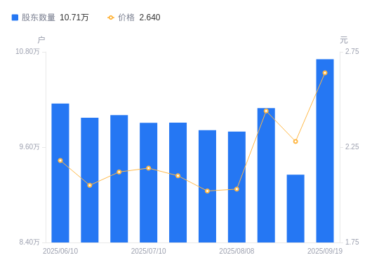 近一年(2024年9月30日至2025年9月19日),利源股份A股股东户数从6.38万户,增加至10.71万户,增幅67.71%,区间股价上涨111.20%。