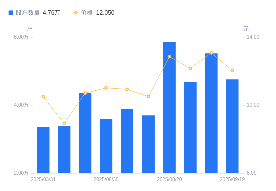 近一年(2024年9月20日至2025年9月19日),山东章鼓A股股东户数从3.58万户,增加至4.76万户,增幅32.83%,区间股价上涨71.41%。