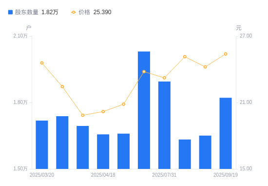 近一年(2024年9月30日至2025年9月19日),路畅科技A股股东户数从1.77万户,增加至1.82万户,增幅2.96%,区间股价上涨1.44%。