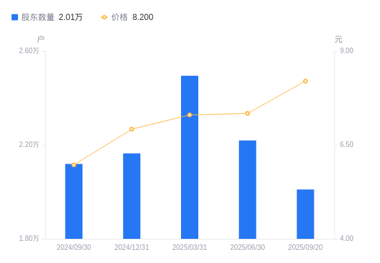 近一年(2024年9月30日至2025年9月20日),华资实业A股股东户数从2.12万户,减低至2.01万户,降幅5.14%,区间股价上涨49.36%。