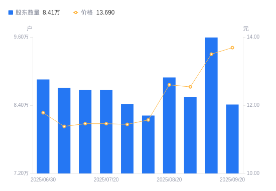 近一年(2024年9月20日至2025年9月20日),创维数字A股股东户数从8.86万户,减低至8.41万户,降幅4.98%,区间股价上涨55.55%。