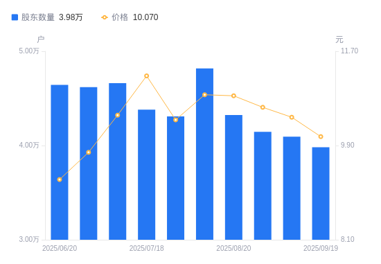 近一年(2024年9月20日至2025年9月19日),闽东电力A股股东户数从5.28万户,减低至3.98万户,降幅24.54%,区间股价上涨25.09%。