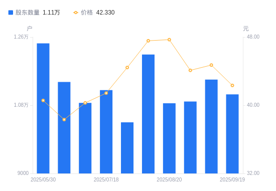 近一年(2024年9月20日至2025年9月19日),肯特股份A股股东户数从1.13万户,减低至1.11万户,降幅1.65%,区间股价上涨50.80%。