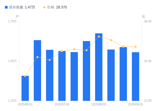 近一年(2024年9月30日至2025年9月19日),南极光A股股东户数从1.09万户,增加至1.47万户,增幅34.56%,区间股价上涨108.91%。