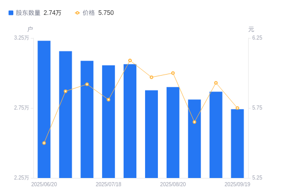 近一年(2024年9月30日至2025年9月19日),思美传媒A股股东户数从3.02万户,减低至2.74万户,降幅9.09%,区间股价上涨38.22%。