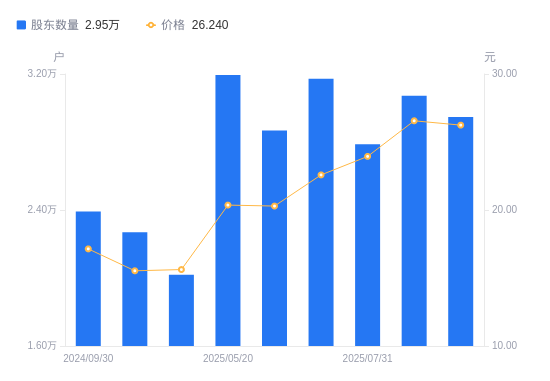 近一年(2024年9月30日至2025年9月19日),爱乐达A股股东户数从2.39万户,增加至2.95万户,增幅23.22%,区间股价上涨80.22%。