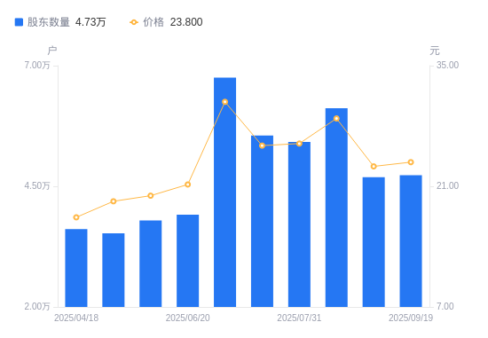 | 日期 | A股户数(户) | 流通A股户均持股数(股) | 户均持股市值(万元) |