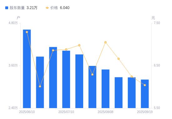 近一年(2024年9月20日至2025年9月19日),红相股份A股股东户数从1.32万户,增加至3.21万户,增幅143.28%,区间股价上涨39.81%。