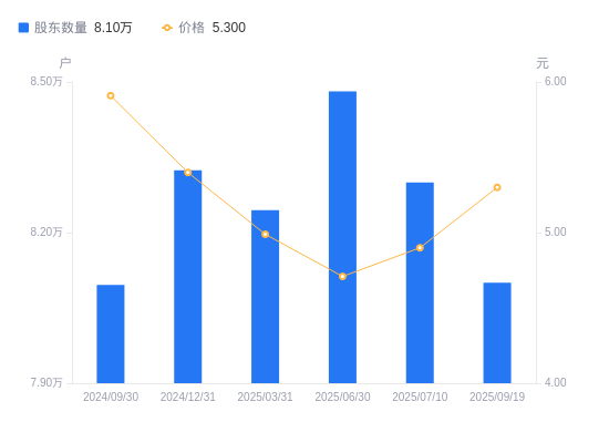 近一年(2024年9月30日至2025年9月19日),海南橡胶A股股东户数从8.1万户,增加至8.1万户,增幅0.05%,区间股价下跌1.29%。