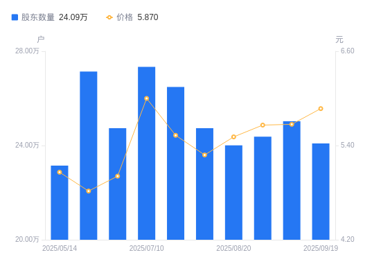近一年(2024年9月20日至2025年9月19日),跨境通A股股东户数从11.96万户,增加至24.09万户,增幅101.30%,区间股价上涨222.53%。
