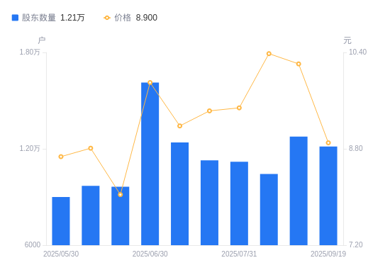 近一年(2024年9月20日至2025年9月19日),农尚环境A股股东户数从8789户,增加至1.21万户,增幅38.22%,区间股价上涨109.91%。