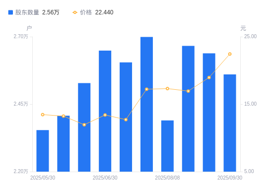 近一年(2024年9月30日至2025年9月19日),新雷能A股股东户数从2.56万户,增加至2.64万户,增幅3.01%,区间股价上涨81.69%。
