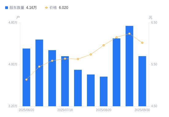 近一年(2024年9月30日至2025年9月30日),万顺新材A股股东户数从3.7万户,增加至4.16万户,增幅12.35%,区间股价上涨31.15%。
