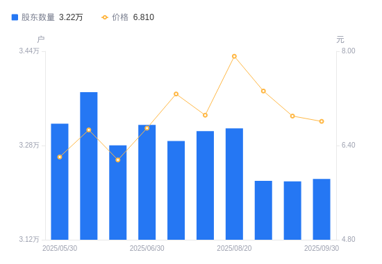 10月9日消息,数据显示,截至2025年9月30日,金能科技A股股东总户数为3.22万户,较上期(2025年9月19日)增加41户,增幅0.13%。公司最新A股总股本为8.48亿股,其中流通A股8.48亿股,户均持有流通A股数量为2.63万股,较上期减少33.51股,降幅0.13%;户均持流通A股市值17.92万元,较上期减少2598.99元,降幅1.43%。