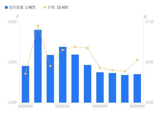 近一年(2024年9月30日至2025年9月30日),建科院A股股东户数从1.66万户,减低至1.48万户,降幅10.92%,区间股价上涨16.76%。