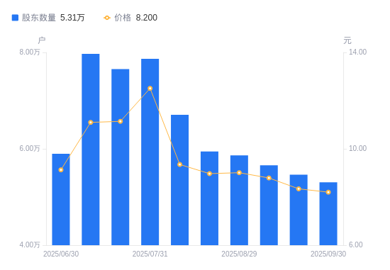 近一年(2024年9月30日至2025年9月30日),ST应急A股股东户数从4.32万户,增加至5.31万户,增幅22.76%,区间股价上涨13.46%。