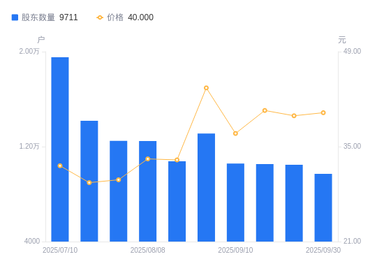 近一年(2024年9月30日至2025年9月30日),创益通A股股东户数从1.49万户,减低至9711户,降幅34.83%,区间股价上涨170.27%。