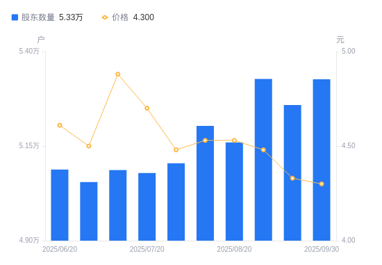 近一年(2024年9月30日至2025年9月30日),张家港行A股股东户数从5.22万户,增加至5.33万户,增幅1.96%,区间股价上涨8.04%。