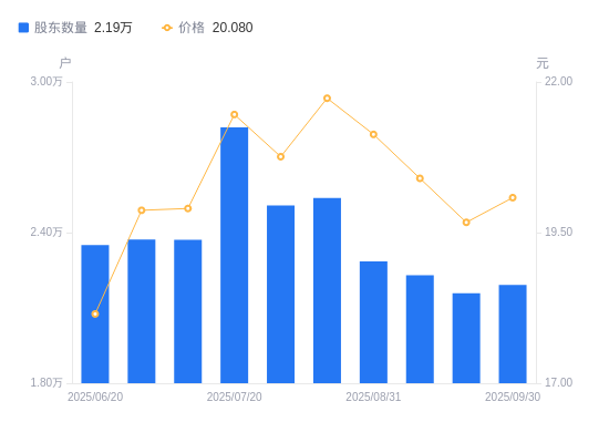 近一年(2024年9月30日至2025年9月30日),丝路视觉A股股东户数从2.58万户,减低至2.19万户,降幅15.12%,区间股价上涨12.43%。