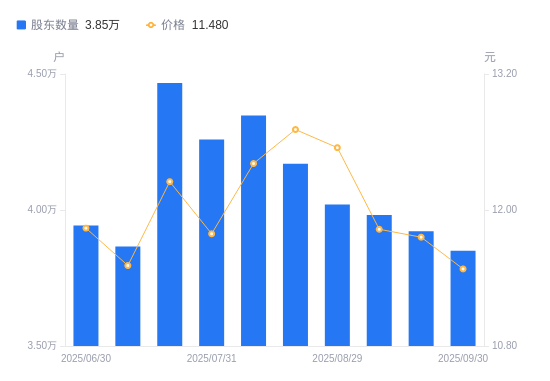 近一年(2024年9月30日至2025年9月30日),东港股份A股股东户数从2.7万户,增加至3.85万户,增幅42.60%,区间股价上涨72.11%。