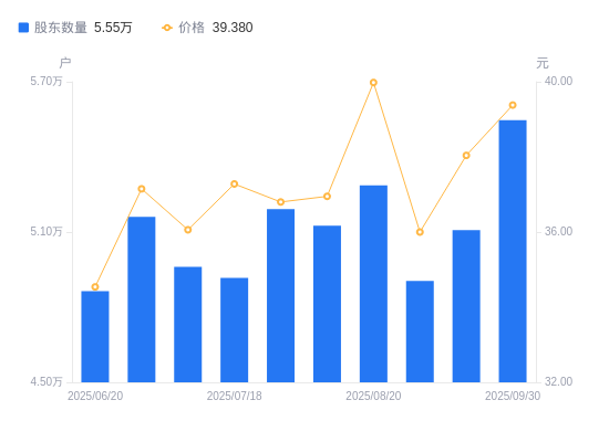 近一年(2024年9月30日至2025年9月30日),容大感光A股股东户数从5.29万户,增加至5.55万户,增幅4.77%,区间股价上涨33.98%。