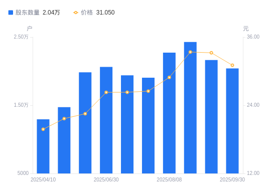 近一年(2024年9月30日至2025年9月30日),朝阳科技A股股东户数从1.48万户,增加至2.04万户,增幅37.96%,区间股价上涨55.17%。
