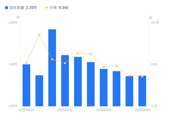 近一年(2024年9月30日至2025年9月30日),英力特A股股东户数从2.58万户,减低至2.29万户,降幅10.95%,区间股价上涨28.31%。