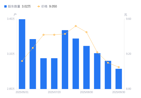 近一年(2024年9月30日至2025年9月30日),甘咨询A股股东户数从3.17万户,减低至3.02万户,降幅4.50%,区间股价上涨13.98%。