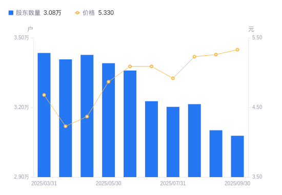近一年(2024年9月30日至2025年9月30日),德联集团A股股东户数从3.45万户,减低至3.08万户,降幅10.80%,区间股价上涨35.28%。