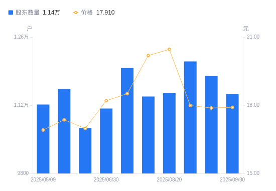 近一年(2024年9月10日至2025年9月10日),朗进科技A股股东户数从9408户,增加至1.21万户,增幅28.61%,区间股价上涨32.96%。